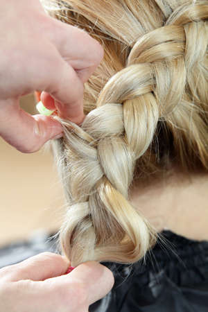 Hairdresser make braid in beauty salon