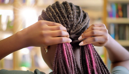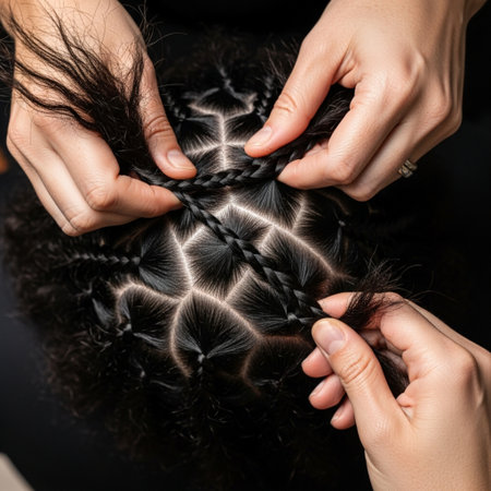 A close-up of intricate cornrow braids, highlighting a protective and stylish hairstyle