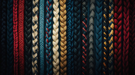 This image showcases a stunning collection of colorful braids and strands, presenting a rich array of textile patterns and textures ideal for creative inspiration.