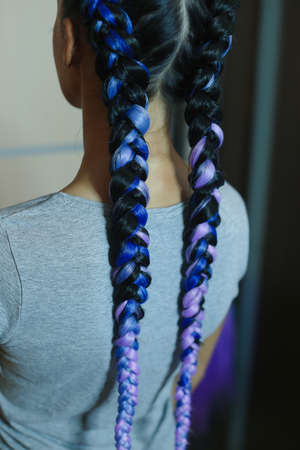 braids Senegalese braids are intertwined to the girls hair, blue braids, hair in the African style
