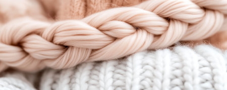Immerse yourself in this close-up of seamless woolen knitting Perfect for fall and winter designs, this image highlights cozy craftsmanship Detailed threads and subtle variations create a natural, handmade feel, ideal for backgrounds, brochures, and social media Evoke warmth and relaxation with this elegant woolen textile AI Generative