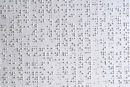 the page of a book written in the Braille alphabet, the tactile reading system in relief for the blind
