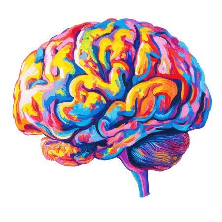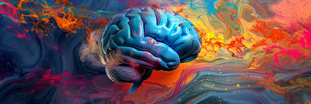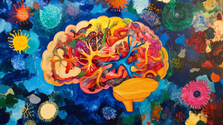 Colorful abstract painting of a human brain on a vibrant background