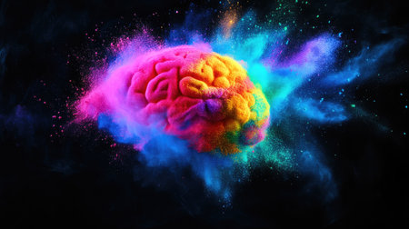 Digital Brain Exploding in Vibrant Powder Colors