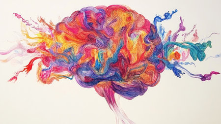 Vibrant illustration of a brain symbolizing creativity and inspiration, blending colors to represent abstract thoughts and ideas in a modern artistic design.