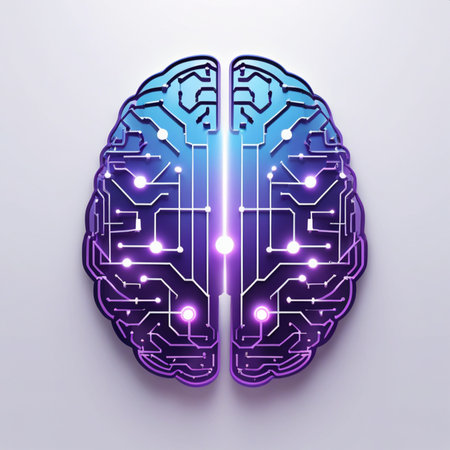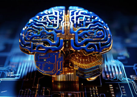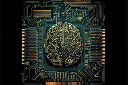 A colorful brain is prominently displayed on a circuit board, showing advanced technology and AI concepts.