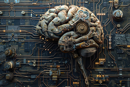 An AI generated illustration of a mechanical cyborg brain enhanced with machinery
