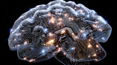 This image features a brain integrated with intricate circuitry, symbolizing the fusion of human intellect and technological advancement. The glowing connections highlight the innovative synergy between neuroscience and digital capabilities, representing a new era of creativity and understanding in a rapidly evolving world.