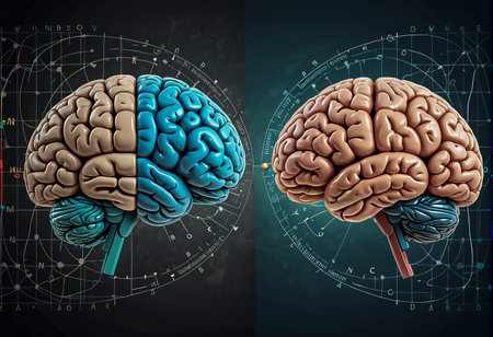 Abstract art illustrating two brains, highlighting differences in thought processes and neural networks.