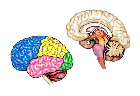A model of the human brain, showing the different lobes and sections, with labels or color coding for an educational look, isolated on a clean background.