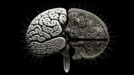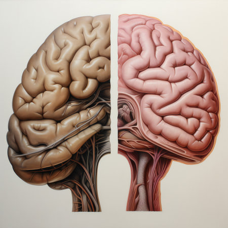 This detailed cross-section of the human brain illustrates its anatomical features, making it ideal for educational purposes in neuroscience and medicine.