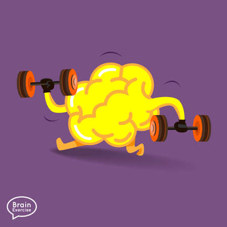 Exercise vector concept: Brain doing exercise with dumbbell and hourglass