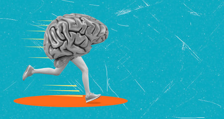 The brain with a running foot symbolizes a healthy mind and psychology. Cognitive agility, the concept of mental training. The concept of running smart people.