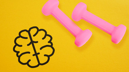 Human brain lifts weight with dumbbell, memory and mind training, brain power and mindset