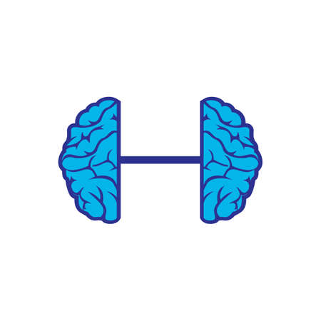 Brain exercise vector logo template. Brain barbell vector logo design template.