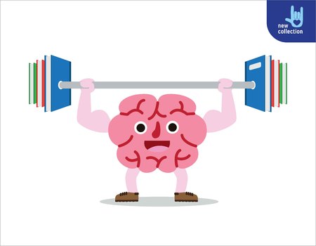A muscular pink brain with strong arms lifts a heavy barbell on a white background.