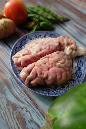 Brain made from vegetables like carrots, broccoli and paprika, healthy food and lifestyle, vegan nourishment