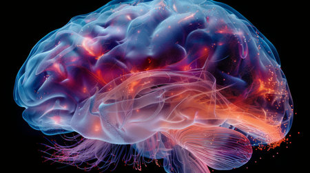 Digital representation of a transparent brain with glowing neural connections showing advanced concepts of neuroscience and technology integration in artificial intelligence research