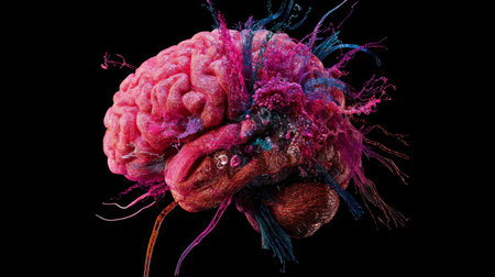 This vibrant and imaginative representation of a brain showcases intricate details and vivid colors, merging art and science to explore the complexities of the mind.