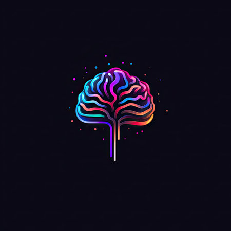 Stunning neon brain illustration with glowing accents set against a dark background, ideal for technology and science themes, showcasing creativity and innovation.
