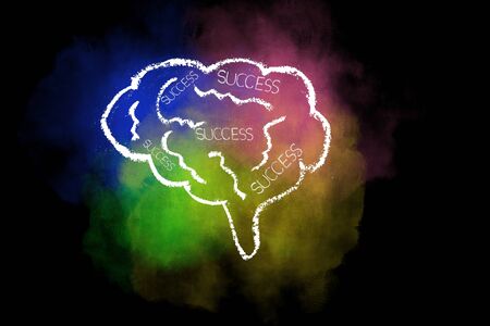 Wording SUCCESS with human brain symbol.marketing and education concept.urful background.learning and education concept.
