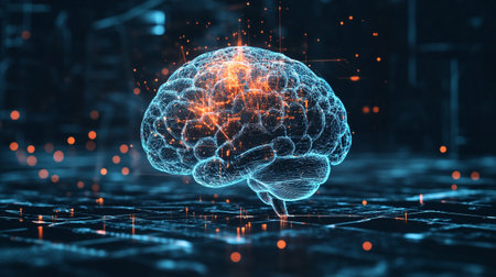 Digital Brain with Glowing Circuitry and Neural Network. Generative AI.