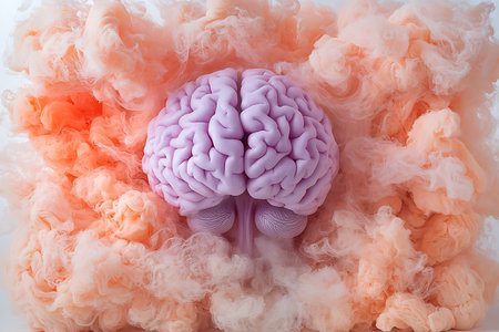 A vivid and imaginative representation shows a brain floating amidst vibrant clouds, creating a dreamlike atmosphere.