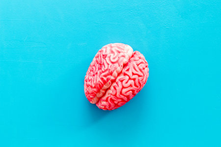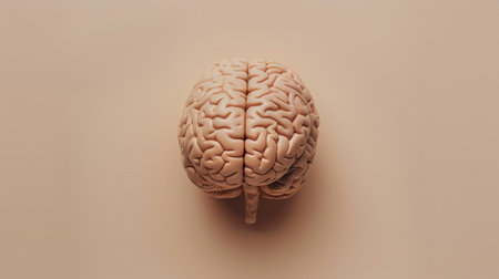 Human brain model on a neutral background, top view. Scientific study and education concept.