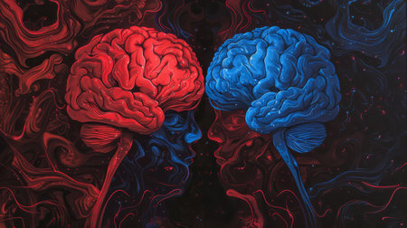 Abstract art illustrating two brains, highlighting differences in thought processes and neural networks.