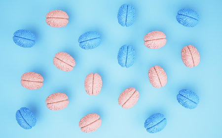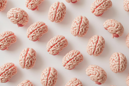 Top view of a repeat pattern with 3d render human brains, perfect for medical concepts