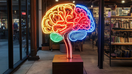 This striking neon brain sculpture brings vibrant color and creativity to modern interiors, symbolizing thought and inspiration in an artistic setting.