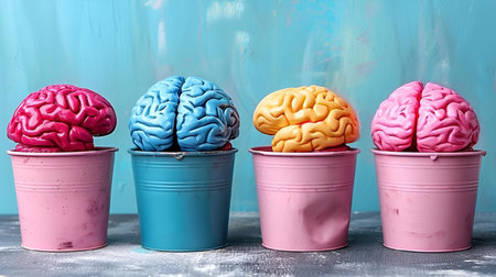 Colorful brain mosaic against a diverse backdrop, illustrating the richness of human cognition