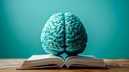 Realistic anatomical model of a human brain resting on a flowering cherry blossom branch symbolizes mental health and blossoming ideas. Generative ai