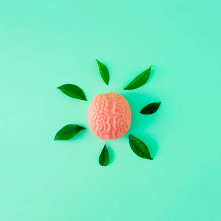 Creative brain concept. Human brain anatomical model, top view.