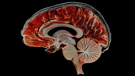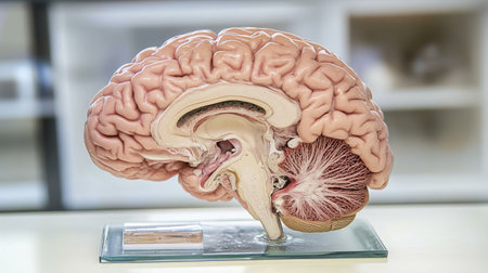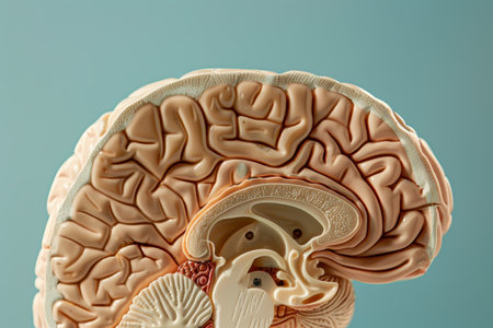 This detailed cross-section of the human brain illustrates its anatomical features, making it ideal for educational purposes in neuroscience and medicine.
