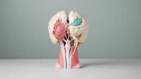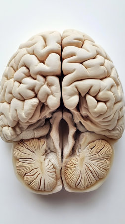 A detailed anatomical model of the human brain showcasing its structure and various components for educational and scientific purposes.
