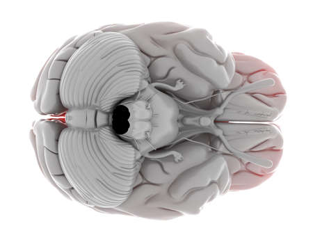 Human brain anatomy on a white background. 3d render illustration.