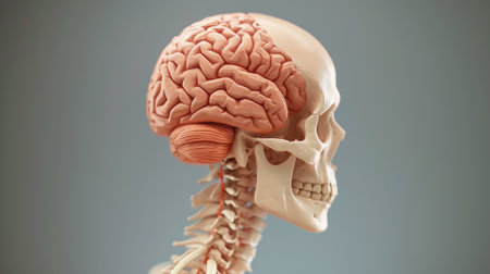 A 3d model of a human brain with the spinal cord and neck, AI