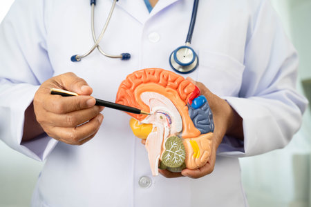 Medical professional holds a detailed model of a human brain