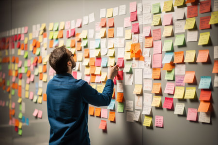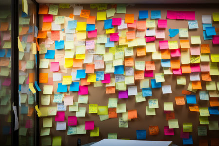 A vibrant display of sticky notes on a wall, ideal for project management and brainstorming sessions. Generative AI