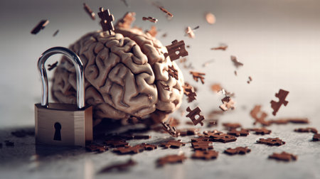 A creative image of a brain composed of puzzle pieces, symbolizing the complexity of thoughts and emotions, set against a contrasting dark background