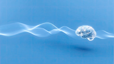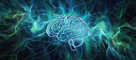 Glowing Brain with Blue and Green Light Waves for Mental Clarity and Stress Relief Design