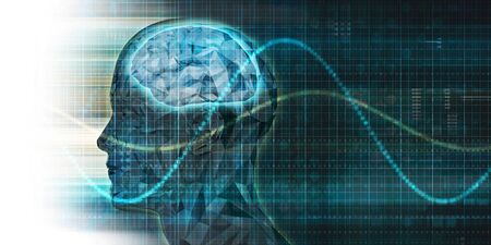 An AI generated illustration of a mans head with an electro wave emanating from it