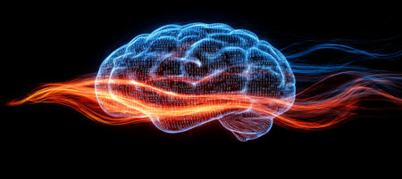An artistic illustration of a brain with vibrant, colorful neural pathways glowing, symbolizing brain activity and cognitive processes against a dark background.
