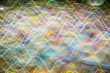 Festive abstract textured background. Swirl pattern. White curlicues on a yellow and orange background. Christmas lights