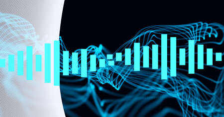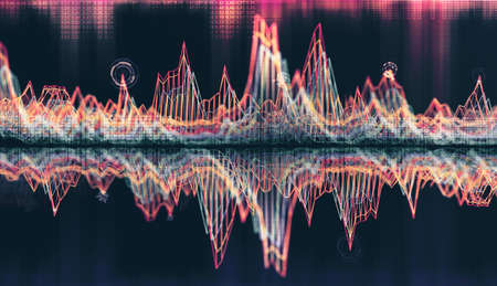 Electric current, energy wave, EQ graph, technology background, 3D illustration