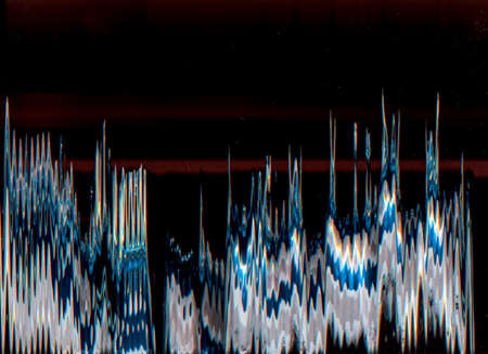 Glitching music frequencies with vibrant abstract background and edgy elements