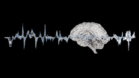 Human brain showing seizure activity with electroencephalogram line on transparent background