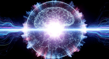 This stunning abstract image showcases a digital brain with vibrant colors, exemplifying the integration of technology with neural connections and data flows.
