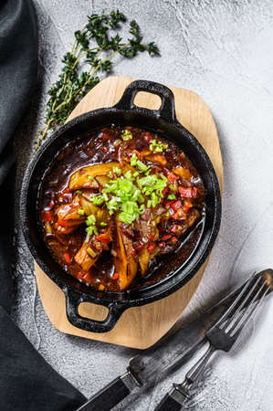 Stew with fish and vegetables. Spicy fish stew. Fish seasoned dish